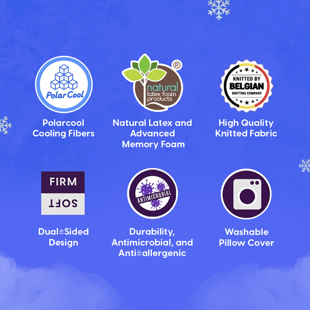 💤 Polarcool technology: The Polar Cool Pillow features a cutting-edge cooling cover, scientifically engineered to be 88% cooler, ensuring a refreshing sleep.